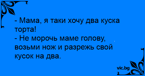 - Не морочь маме голову, возьми нож и разрежь свой кусок на два.