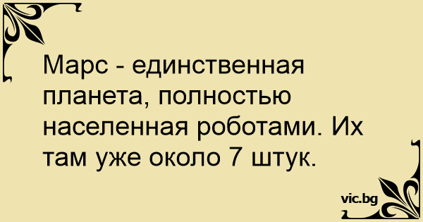 Марс - единственная планета, полностью населенная роботами. Их там уже около 7 штук.