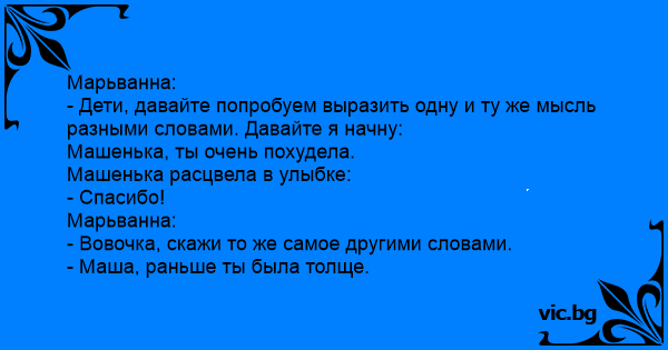 - Вовочка, скажи то же самое другими словами.