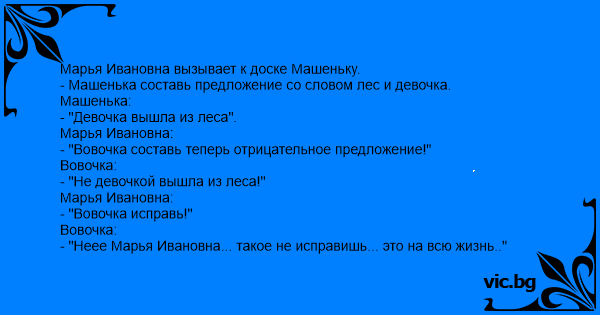 - "Вовочка составь теперь отрицательное предложение!"
