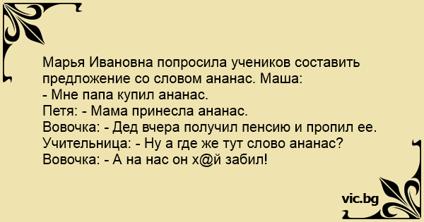 учительница: - дети, придумайте предложение со словом "ананас"....
