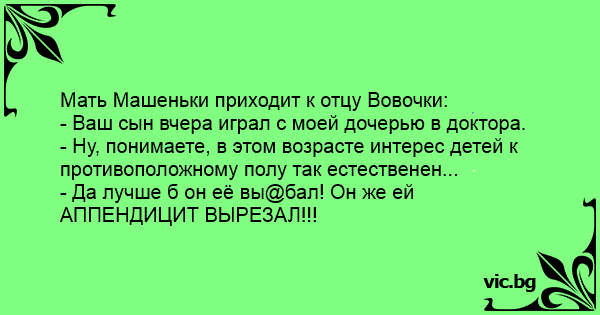 Мать Машеньки приходит к отцу Вовочки:
