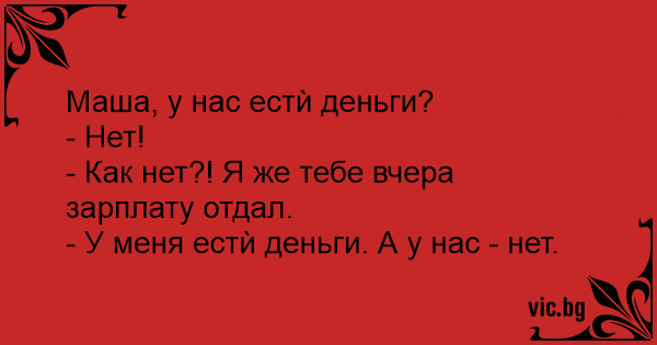 Маша, у нас естѝ деньги?
