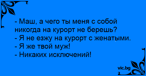 - Маш, а чего ты меня с собой никогда на курорт не берешь?