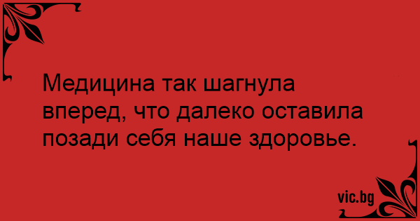 Медицина так шагнула вперед, что далеко оставила позади себя наше здоровье.