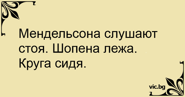 Мендельсона слушают стоя. Шопена лежа. Круга сидя.