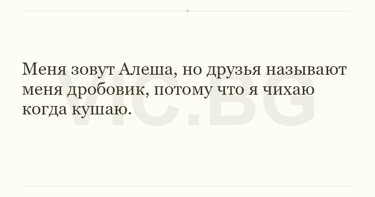 Меня зовут Алеша, но друзья называют меня дробовик, потому что я чихаю когда кушаю.