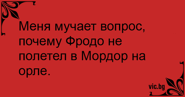 Меня мучает вопрос, почему Фродо не полетел в Мордор на орле.