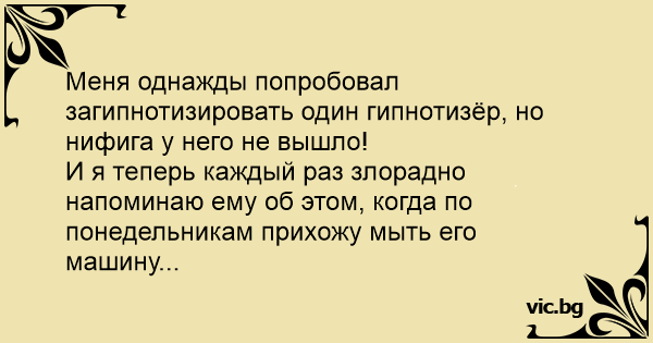 Меня однажды попробовал загипнотизировать один гипнотизёр, но нифига у него не вышло!