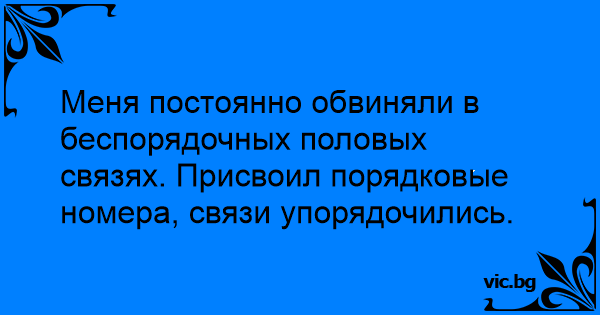 Меня постоянно обвиняли в беспорядочных половых связях. Присвоил порядковые номера, связи упорядочились.