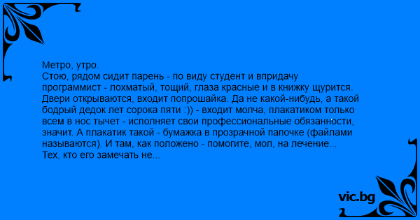 Двери открываются, входит попрошайка. Да не какой-нибудь, а такой