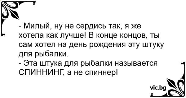 - Милый, ну не сердись так, я же хотела как лучше! В конце концов, ты сам хотел на день рождения эту штуку для рыбалки.