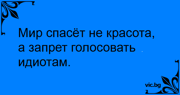 Мир спасёт не красота, а запрет голосовать идиотам.
