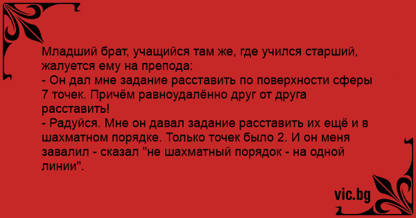 Младший брат, учащийся там же, где учился старший, жалуется ему на препода: