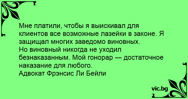 Но виновный никогда не уходил безнаказанным. Мой гонорар — достаточное наказание для любого.