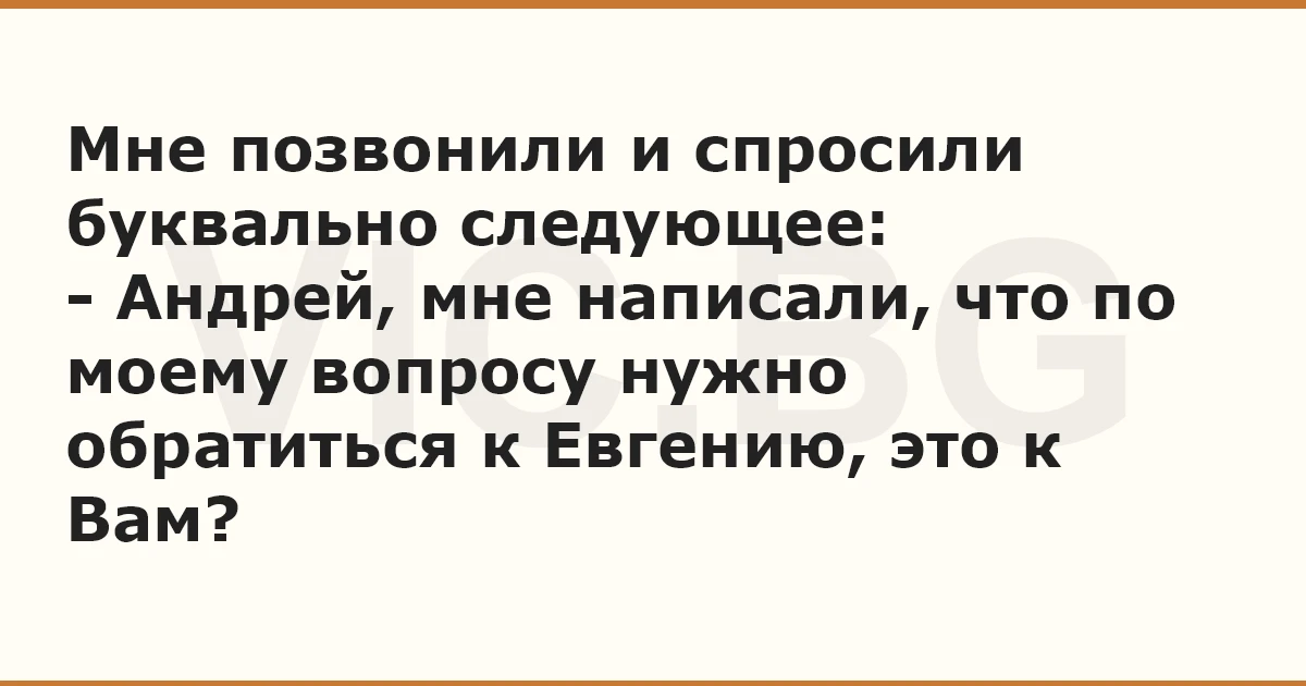 Мне позвонили и спросили буквально следующее: - Андрей, мне написали, что по моему вопросу нужно обратиться к Евгению, это к Вам?