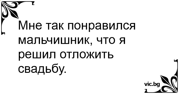 Мне так понравился мальчишник, что я решил отложить свадьбу.