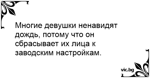 Многие девушки ненавидят дождь, потому что он сбрасывает их лица к заводским настройкам.
