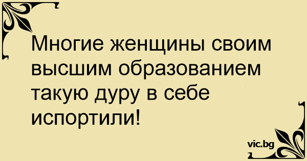 Многие женщины своим высшим образованием такую дуру в себе испортили!