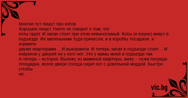 двумя квартирами… И выкормили. И теперь запах в подъезде стоит… И