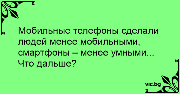 Мобильные телефоны сделали людей менее мобильными, смартфоны – менее умными... Что дальше?