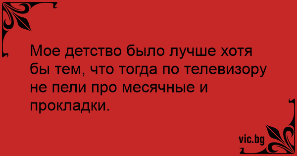 Мое детство было лучше хотя бы тем, что тогда по телевизору не пели про месячные и прокладки.