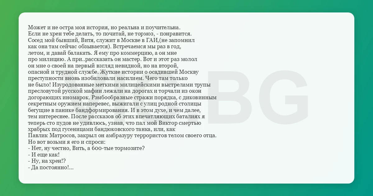 Сосед мой бывший, Витя, служит в Москве в ГАИ,(не запомнил