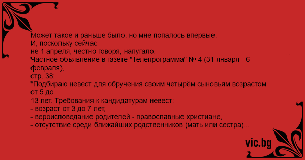 "Подбираю невест для обручения своим четырём сыновьям возрастом от 5 до