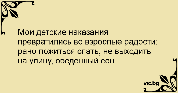E amuzant cum pedepsele din copilărie devin plăcerile de la maturitate. De exemplu : somnul la amiază si palmele la fund.