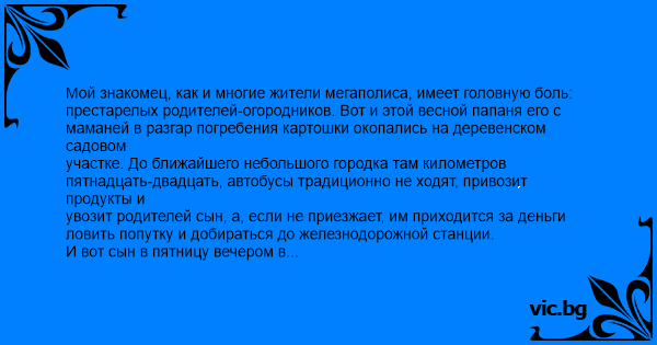 И вот сын в пятницу вечером в деревню не поехал, потому что ещё с