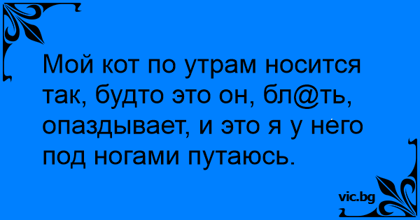 Мой кот по утрам носится так, будто это он, бл@ть, опаздывает, и это я у него под ногами путаюсь.