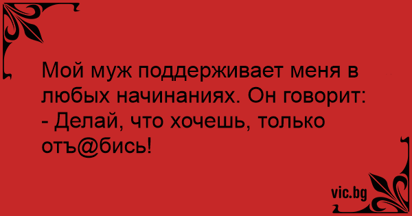 Мой муж поддерживает меня в любых начинаниях. Он говорит: