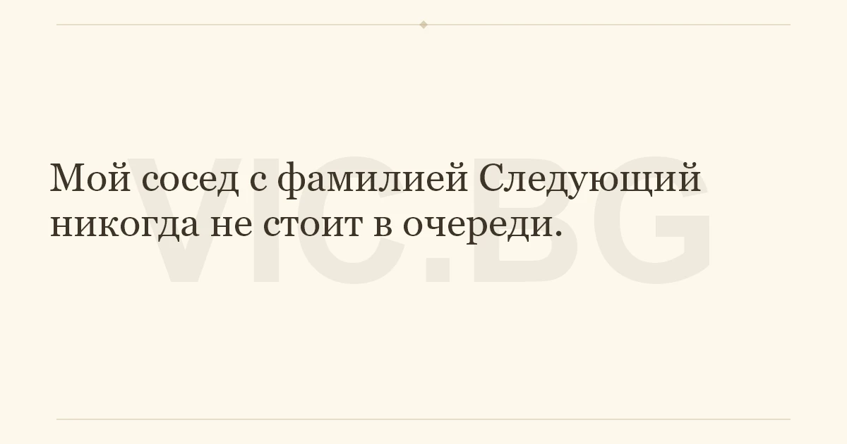 Мой сосед с фамилией Следующий никогда не стоит в очереди.