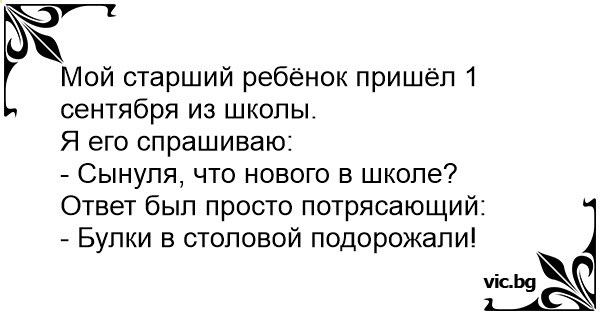 Мой старший ребёнок пришёл 1 сентября из школы.