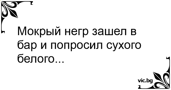 Мокър негър влезе в бара и поиска сухо бяло ...
