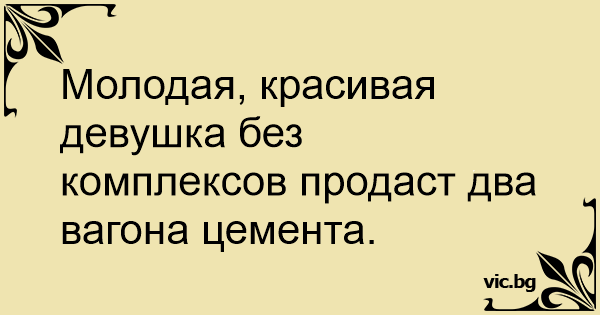 Молодая, красивая девушка без комплексов продаст два вагона цемента.