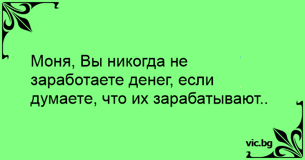 Моня, Вы никогда не заработаете денег, если думаете, что их зарабатывают..