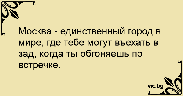 Москва - единственный город в мире, где тебе могут въехать в зад, когда ты обгоняешь по встречке.