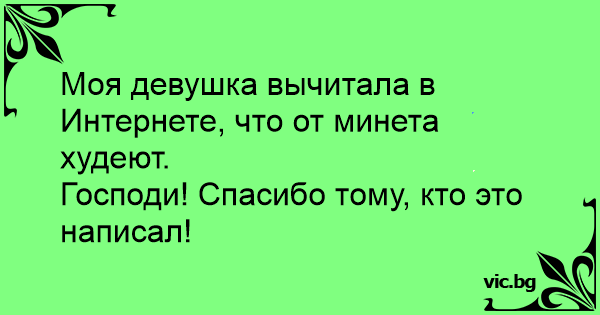Моя девушка вычитала в Интернете, что от минета худеют.