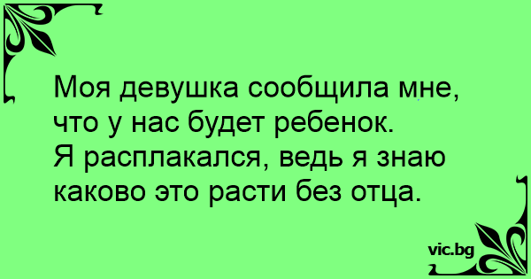 Моя девушка сообщила мне, что у нас будет ребенок.