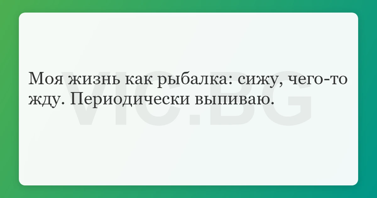 Моя жизнь как рыбалка: сижу, чего-то жду. Периодически выпиваю.