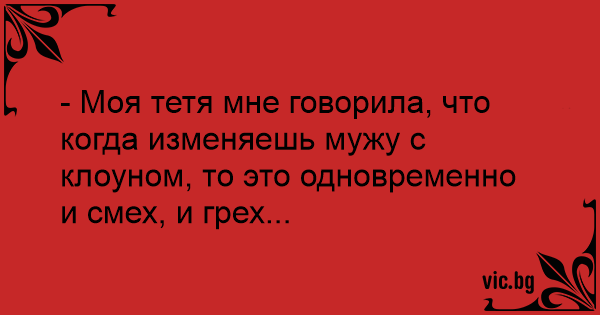 - Моя тетя мне говорила, что когда изменяешь мужу с клоуном, то это одновременно и смех, и грех...