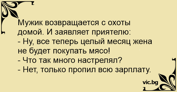 Мужик возвращается с охоты домой. И заявляет приятелю: