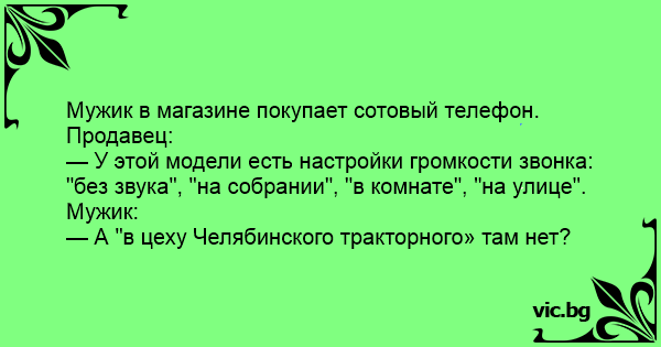 Мужик в магазине покупает сотовый телефон. Продавец: