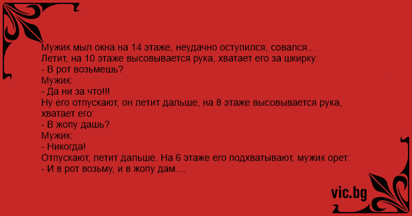 Мужик мыл окна на 14 этаже,...
