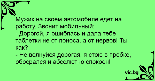 - Не волнуйся дорогая, я стою в пробке, обосрался и абсолютно спокоен!