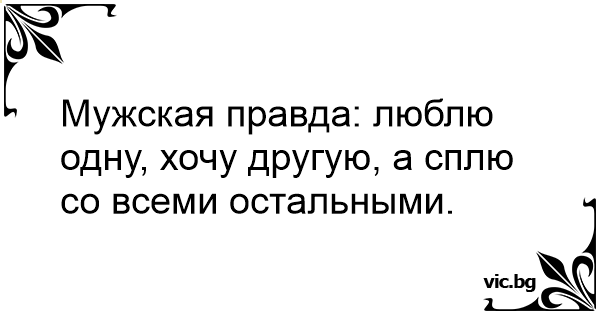 Мужская правда: люблю одну, хочу другую, а сплю со всеми остальными.