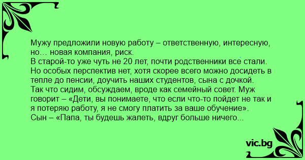 Мужу предложили новую работу – ответственную, интересную, но… новая компания, риск.