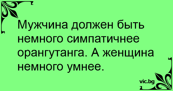 Мужчина должен быть немного симпатичнее орангутанга. А женщина немного умнее.