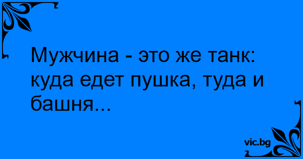 Мужчина - это же танк: куда едет пушка, туда и башня...